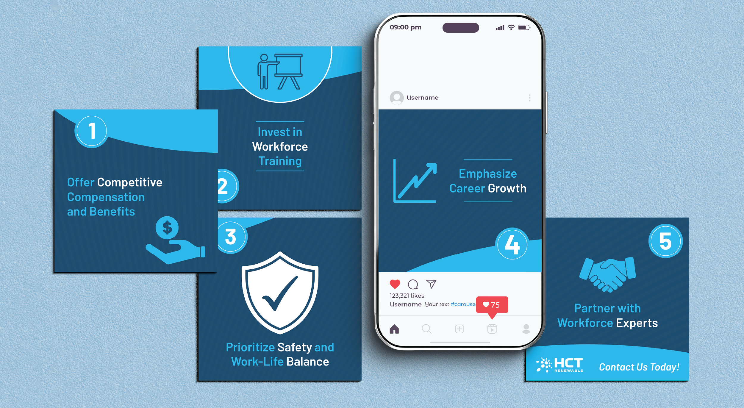 • Boosting Engagement: To amplify your content, we create engaging, memorable visual graphics and eye-catching copy to attract your brand’s ideal audiences.